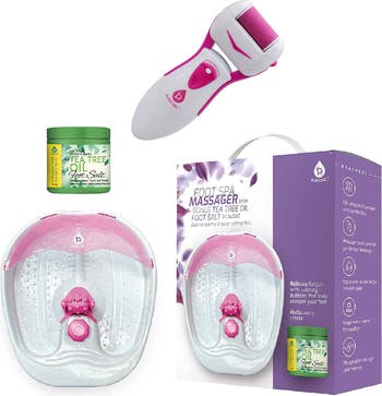 Ultimate Foot Care Bundle Foot Spa Massager with Tea Tree Oil Foot Salt Scrub (Warming Function), Battery Operated Callus Remover, Foot Spa, and Foot Smoother