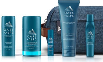 Give the gift of powerful, clean skincare that works as hard as he does. This ultimate gift set includes: Face + Eye Cream: This hydrating and anti-aging face moisturizer and eye cream uses Aloe Leaf Juice and Vitamin E to fight free radicals, a main culprit of aging, as well as Alpine Caribou Moss to boost elasticity. Solid Charcoal Face Wash: Powerful and portable, this face cleansing stick taps Activated Charcoal and other exfoliants to dissolve deep-down dirt and help fight acne. Wake Up Eye Stick: Uses caffeine to help de-puff under-eye bags and Persian Silk Tree to reduce the appearance of fine lines and dark circles. Shine-Free Lip Balm: This organic, ultra-hydrating formula will leave lips moisturized and minty fresh but not shiny. Aluminum-Free Deodorant: An aluminum-free deodorant that actually works without leaving yellow pit stains. This formula uses corn starch to absorb odors and aloe to help cool. Travel Bag: Crafted with water-resistant fabric, it’s designed to endure the bathroom, office, trails and luggage.
