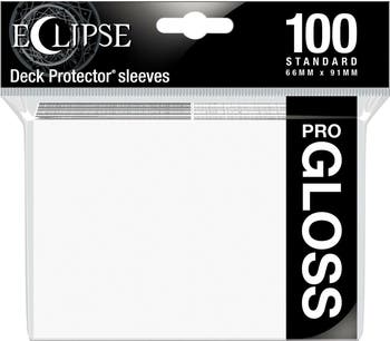 ECLIPSE: STANDARD DECK PROTECTOR SLEEVES - ARTIC WHITE - GLOSS 100CT - See foiled and holographic cards in a new light with Ultra PRO's Eclipse Gloss sleeves. Ultra PRO's exclusive ChromaFusion technology ensures a fully opaque back. With superior durability balanced with an excellent shuffle-feel, these Deck Protectors sleeves are ideal for tournament use in games such as Pokémon and Magic: The Gathering! OVERVIEW: 100 Deck Protector Sleeves. Polypropylene. High-clarity gloss front is perfect for your shiniest collectible cards! Sized to fit Standard Size gaming cards. Archival-safe, polypropylene materials with unique formulations provide a smooth, professional shuffle. Inner layer makes the colored sleeve back completely opaque. PRO-gloss Deck Protector sleeves in a 100-count pack. ULTRA PRO - ECLIPSE LINE: Here at Ultra PRO, we are always looking for ways to innovate and improve our products, and we hope these improvements are as exciting for you as they are for us. The Eclipse Line has an Array of items and Accessories for all your gaming and collecting needs! Eclipse Line by Ultra PRO Brings the Best of Both World from Style to Durability. Battle Against Friends and enemies in style, travel with your battle cards, Gaming cards, or collectible cards safely with the Eclipse line. UP your Game with Ultra PRO!