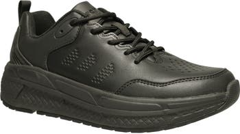 A leather upper with padded collar and tongue adds comfort to your stride in this durable sneaker enhanced by excellent underfoot cushioning and a flexible outsole.