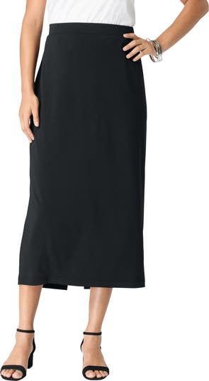 This midi skirt combines comfort and style with a flat waistband, a slightly extended fit, and a flattering back slit that's been lengthened for added elegance. It provides the perfect balance of both style and flexibility for any occasion.