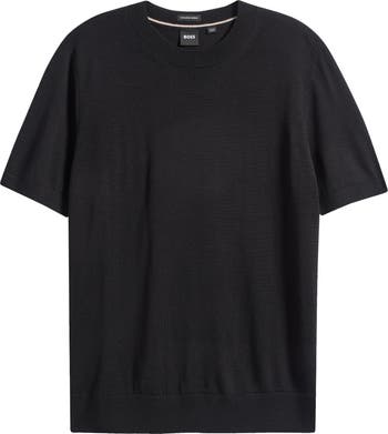 Elevate your casual style in this seasonless T-shirt knit from virgin wool and featuring ribbed detail for a relaxed yet fitted look.