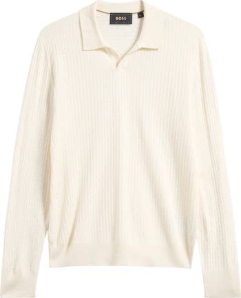 A subtle basket-weave texture brings understated dimension to this refined long-sleeve polo crafted in smooth silk and topped with a modern Johnny collar.