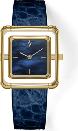 Umbra Aurora glows with a pearl dial - a Swiss movement watch with an Italian leather strap inspired by celestial shadows.