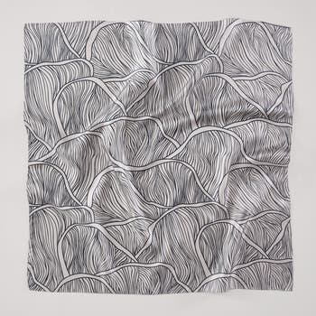 - MODERN ACCESSORIES: Add the perfect fashion accessory to your look with this silk scarf's beautiful print reflecting the intricate, rhythmic patterns found beneath a mushroom cap.