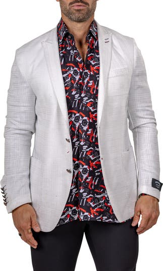 A subtly textured glen check in a palette of whites and greys relaxes the formality and elevates the distinction of a sport coat that pairs crisply peaked lapels with easy, deconstructed tailoring. Traditional pick stitching and patch pockets complement the unlined construction to ensure you look smart while staying on the casual side of well-dressed.