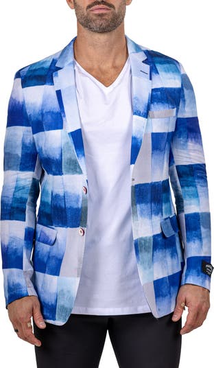 A lightweight cotton weave in a patchwork of gradients, stripes and geometries relaxes the formality and elevates the impact of a sport coat with deconstructed tailoring emphasizing its comfortable fit. Pair it with solid colors and softer fabrics to make it the showstopper of any going-out look.