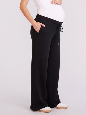 Embrace effortless style and comfort with our wide leg sweatpant. Made from buttery soft material, this pull-on design ensures an easy fit that adapts beautifully to your growing bump. Featuring an elastic waistband and side pockets, this sweatpant is perfect for on-the-go or lounging at home.