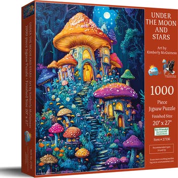 Under the Moon and Stars 1000 pc Jigsaw Puzzle by SunsOut - 1000 Piece Jigsaw Puzzle - Completed Size: 20" x 27" - Puzzle Artist: Kimberly McGuiness - Interlocking Pieces and Durable Construction: SunsOut jigsaw puzzles feature interlocking pieces that fit securely, making assembly easier and reducing frustration. -Ages: 15 years and older - Perfect for adults and seniors. SunsOut puzzles ensure high manufacturing standards ensuring their commitment to quality and customer service. - SunsOut puzzles use soy based inks, high quality puzzle board. As this is a jigsaw puzzle: assembly is required and batteries are not required.
