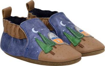 This adorable appliquéd crib shoe is designed for a roomy, comfortable fit with a wide toe box that provides extra space for feet to grow and move freely. The soft suede sole is ultraflexible, promoting a full range of motion and healthy foot development and is also slip-resistant, helping prevent tumbles during those wobbly first steps.