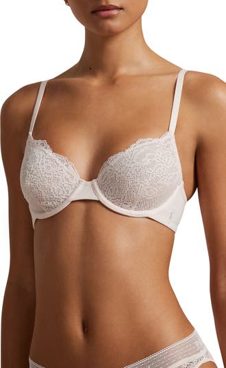 Lightweight lace underwire cups with vertical seams lend a whisper of support to this cotton-blend demi bra.