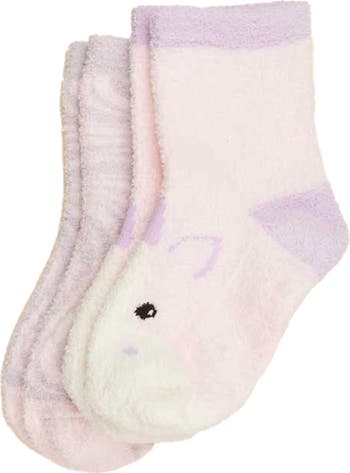 Warmies Plush Crew Socks are the perfect match for your favorite Warmies pajamas! Each set comes with 2 pairs of socks with characters and prints, so little ones can mix and match in style. The socks are crafted with a blend of spandex and polyester, featuring a no-slip grip on the bottom made with clear silicone for secure steps during bedtime adventures. Match your favorite plush with your favorite cozy socks, as the Plush Crew Socks are just the right mix of style and warmth.