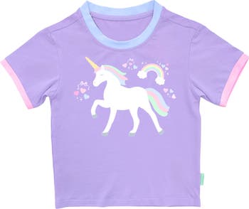 She'll sparkle from head to toe in this delightfully playful Rainbow Unicorn T-Shirt by Bits & Bows. Adorned with rainbows, hearts, and a unicorn, it captures all the magical favorites little girls adore, making every day a little more fun and colorful.