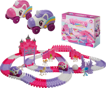 252 Unicorn Speedway Snap Track Set: Provides a large quantity of toy train tracks, snap-on tracks, and a pink construction set for endless construction and creative play possibilities. Vibrant Landscape Features: Includes 1 Space Gate, 4 bridge and 1 Tower to enhance imaginative play with scenic elements and create a colorful world with playset accessories. Endless Creative Possibilities: Designed to inspire creativity and imagination in children, encouraging problem-solving and fine motor skills through creative play and an imaginative toy set. STEM Authenticated: Our Unicorn Speedway Track set meets rigorous standards for quality and authenticity, ensuring a trusted and engaging sensory experience. Experience endless fun with the USA Toyz Unicorn Speedway Adventure Tracks – 252-Piece Unicorn Car Track Set for Kids! This bright pink race track set includes 252 snap-together pieces that kids can easily build into fun shapes and layouts. It features a windmill, bridge, track gates, road arches, small billboards, and more! Kids can race the two included cars through their custom track. Watch the light-up cars zoom around trees and signs for an exciting ride. Each car needs 2 AA batteries (not included). This STEM toy helps kids build motor skills, boost creativity, and learn through play. Great for indoor or outdoor fun, it's a top gift for birthdays and holidays! Perfect for toddlers, boys, and girls who love Unicorn car tracks and race toys.