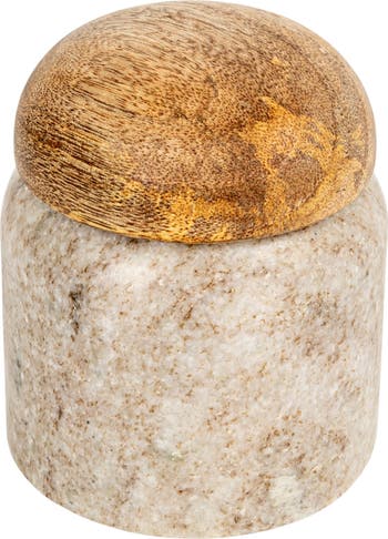 Unique Marble and Mango Wood Pinch Pot Canister with Lid, Natural