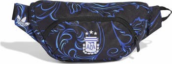Carry the passion of international football from the stands to the streets with this Argentina National Team Waist Bag from adidas. A main compartment with a zipper closure and a front zip compartment provide secure storage for all your essentials, while the adjustable buckle closure and carabiner loop attachment on the side provide customizable, comfortable carry. The all-over team-inspired pattern and heat-sealed graphics ensure your Argentina National Team pride shines bright no matter where you go, for a stylish display of team spirit.