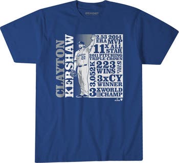Wear the legacy of a Los Angeles Dodgers legend with this Clayton Kershaw GOAT List T-Shirt from BreakingT. Kershaw, a three-time Cy Young Award winner and World Series champion, has cemented his place among the greatest pitchers of all time. This stylish t-shirt pays homage to his remarkable achievements with screen-printed graphics listing his most memorable accomplishments. Crafted from a super-soft and durable cotton fabric, this tee is the perfect way for any fan to recognize Kershaw's rightful place on the GOAT list.