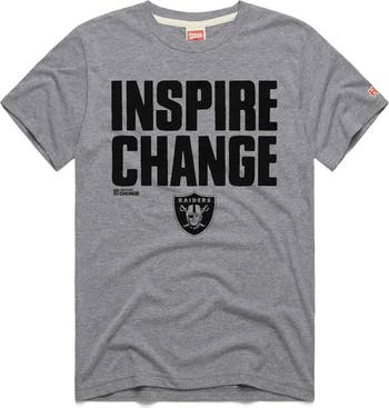 Support the change you want to see in the world. This Homage Las Vegas Raiders Tri-Blend T-Shirt is part of the NFL's Inspire Change initiative, which aims to create a more equal and just future for everyone. It features a screen printed Las Vegas Raiders logo with the NFL Inspire Change logo across the front. The NFL does not profit from the sale of Inspire Change products. Charitable contributions are awarded by the NFL Foundation directly to NFL's Inspire Change nonprofit partners. For more information, please visit www.NFL.com/InspireChange.