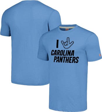 The Unisex Homage Light Blue Carolina Panthers The NFL ASL Collection by Love Sign Tri-Blend T-Shirt is a must-have for devoted Carolina Panthers fans. This tri-blend tee features screen-printed graphics from the NFL ASL Collection by Love Sign, showcasing support for the Panthers and the deaf community. Made from a comfy blend of polyester, cotton, and rayon, this t-shirt is perfect for game day or showing Panthers pride.