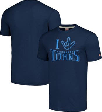The NFL ASL Collection by Love Sign is another step from the NFL and the Tennessee Titans to unite football fans from all walks of life. The American Sign Language sign for "I Love You" is featured on this Tri-Blend T-Shirt. Spread the love for your Tennessee Titans in this comfy tee from Homage.