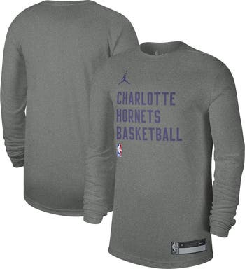 The Unisex Jordan Brand Heather Gray Charlotte Hornets 2023/24 Legend On-Court Practice Long Sleeve T-Shirt is the perfect way to show your support for the Charlotte Hornets. Made from breathable polyester, this shirt features screen print graphics that proudly display the Hornets logo. The heat-sealed jock tag adds a touch of authenticity, while the Move To Zero initiative ensures that this shirt is made with sustainable materials. Whether you're cheering on the Hornets from the stands or just showing your team spirit, this shirt is a must-have for any fan.