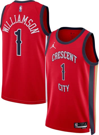 Capture your team's distinct identity in an innovative design with this Zion Williamson New Orleans Pelicans Swingman Statement Edition Jersey from Jordan Brand. It features classic trims and integrated Dri-FIT technology for added appeal and breathability. Plus, bold Zion Williamson graphics complete this striking jersey for a piece of gear that shows your fandom is on the cutting edge.