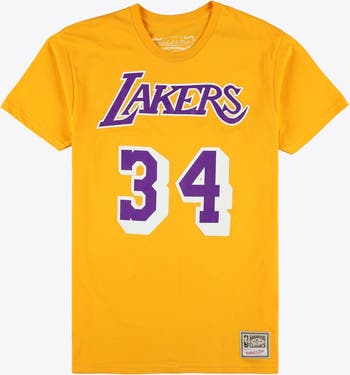 Unisex Mitchell & Ness Shaquille O'Neal Gold Los Angeles Lakers Hardwood Classics Name & Number T-Shirt