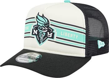Show your love for the New York Liberty with this Banner Foam Front 9FIFTY A-Frame Adjustable Trucker Hat from New Era.The 9FIFTY A-Frame design combines a high-profile, pinched crown with breathable mesh panels, ensuring both style and comfort. The bold, embroidered team logo with raised details and printed wordmark proudly display your New York Liberty fandom.