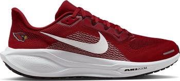 Hit the ground running with these Arizona Cardinals Air Zoom Pegasus 41 Sneakers from Nike. Designed for both performance and fandom, these sneakers feature responsive cushioning thanks to the dual Air Zoom units and ReactX foam midsole, providing an energized ride for daily runs and casual wear. The improved engineered mesh upper offers enhanced breathability while reducing weight, ensuring maximum comfort, while the signature waffle-inspired rubber outsole delivers exceptional traction and flexibility. Crafted with ReactX foam, these sneakers not only enhance performance but also reduce their carbon footprint, making them a sustainable choice for the eco-conscious fan. With a heel-to-toe drop of 10 mm and weighing approximately 10.4 oz, these Pegasus 41s will have you repping your favorite NFL team with comfort and style.