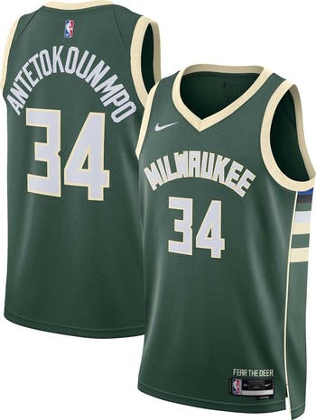 Capture your team's distinct identity in a new and innovative design when you grab this Giannis Antetokounmpo Milwaukee Bucks Association Edition Swingman Jersey from Nike. Directly inspired by the team's on-court look, it features classic trim and Milwaukee Bucks graphics along with Nike's Dri-FIT technology for added comfort. Before you head to the next Milwaukee Bucks game, grab this incredible jersey so everyone knows your fandom is on the cutting edge.