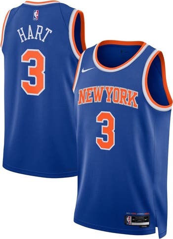 Gear up with this Josh Hart New York Knicks Swingman Jersey from Nike and show off your fandom. This Icon Edition jersey boasts a double-knit fabric with a mesh texture, ensuring both a stylish look and breathable comfort on or off the court. The droptail hem with side splits allows for a full range of motion, letting you move freely and comfortably as you celebrate every basket by Josh Hart.