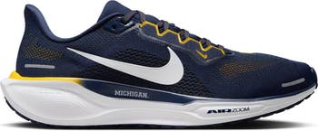 Feel light on your feet on game day with these Michigan Wolverines Zoom Pegasus 41 Running Shoes. Crafted by Nike, the dual Air Zoom units and ReactX foam midsole provide you with a lighter-weight energy return, while the improved engineered mesh on the upper decreases weight and increases breathability. The sleek Michigan Wolverines graphics will have you decked out from head to toe in team spirit.