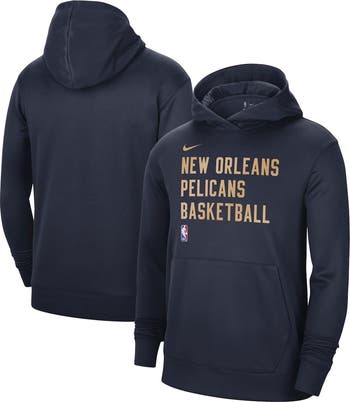 The Nike Navy New Orleans Pelicans 2023/24 Performance Spotlight On-Court Practice Pullover Hoodie is the perfect way to show your support for the New Orleans Pelicans. Made from lightweight polyester, this hoodie is ideal for mild temperatures and features a front pouch pocket for convenient storage. Heat-sealed graphics ensure your Pelicans pride will never fade, and the loose fit provides a comfortable and relaxed feel. Whether you're cheering on the Pelicans from the stands or just showing your support around town, this hoodie is a must-have for any fan.