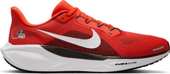 Hit the ground running with these Cleveland Browns Air Zoom Pegasus 41 Sneakers from Nike. Designed for both performance and fandom, these sneakers feature responsive cushioning thanks to the dual Air Zoom units and ReactX foam midsole, providing an energized ride for daily runs and casual wear. The improved engineered mesh upper offers enhanced breathability while reducing weight, ensuring maximum comfort, while the signature waffle-inspired rubber outsole delivers exceptional traction and flexibility. Crafted with ReactX foam, these sneakers not only enhance performance but also reduce their carbon footprint, making them a sustainable choice for the eco-conscious fan. With a heel-to-toe drop of 10 mm and weighing approximately 10.4 oz, these Pegasus 41s will have you repping your favorite NFL team with comfort and style.