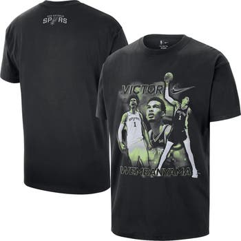 Showcase your appreciation for Victor Wembanyama by sporting this Athlete T-Shirt from Nike. Its heavyweight cotton fabric featuring an eye-catching tribute to the San Antonio Spurs superstar provides a premium look and feel. The loose fit and dropped shoulders allow for unrestricted movement, giving you roomy comfort in this Victor Wembanyama shirt.
