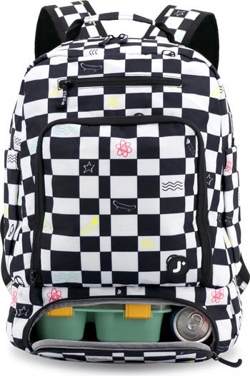 The Packmate 2-in-1 lunch box backpack for kids and adults combines a school backpack with the convenience of a built-in lunch box compartment! This lunch bag backpack has a large compartment for books, a 14-inch laptop compartment, a front utility pocket with organizer, 2 expandable bottle sleeves, plus an insulated lunch compartment. The built-in lunch box has high density insulation and a heat reflective silver lining to keep your food cold (or hot). Insulated lunch box compartment measures 11.5 x 9 x 3.75 inches. Lunch box liner easily wipes clean. Designed for comfort and durability, with padded back and shoulder straps provide extra cushion. Made of heavy duty 600D ripstop polyester fabric, this backpack lunch bag for women and kids holds up to punishment. The top handle for is great carrying like bag or hanging on a hook. At J World, we stand behind our products 100%. If you have any issues with this insulated lunch backpack for kids and adults, we will make things right. Measurements: Backpack 17 x 13 x 9 inches. Holds 29 liters. For age 5 years and up