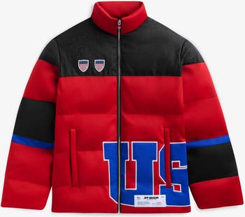 Off Season continues to redefine fan apparel with high-end designs that take any outfit to new heights. A cold-weather staple designed to stand out, this Puffer Jacket features bold Team USA embroidery and an Off Season jacquard chest panel for a refined take on winter outerwear. Crafted with a water-resistant finish and corduroy lining, this puffer provides exceptional warmth without sacrificing style. Finished with padded polyester fill for warmth without bulk, it's built for everyday layering and versatility.