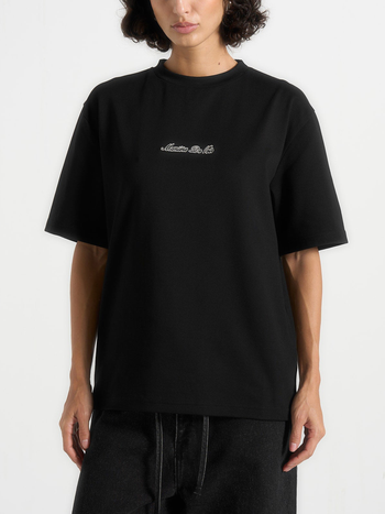 Designed as an everyday essential, this unisex T-shirt is crafted from soft cotton fabric for a high-quality feel. The crew neckline keeps the look clean and timeless, while the regular fit offers a refined shape. Finished with classic short sleeves and a contrast bordered Manière De Voir signature script at the centre, it brings versatility to a staple piece.