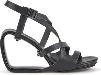 The Mobius Sia Hi is a strappy sandal with a hollow loop-shaped heel and a single band that forms the sole, heel, footbed, and upper of the shoe. The fiber-reinforced nylon heel is the strongest part of the shoe, while its open wedge shape keeps it incredibly light. United Nude's launch product, the Mobius, was revealed in 2003 and has since become an icon in the world of design. The style was born from a conceptual development of the M��bius strip, a single-sided surface with no boundaries. Its distinct shape was inspired by transforming the frame of Mies van der Rohe's Barcelona Chair into a single band, uniting the upper, sole, footbed and heel into one infinite piece.