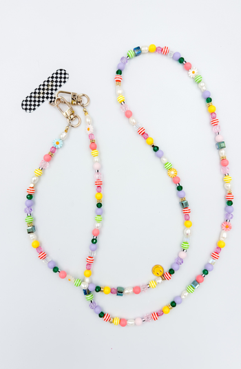 Elevate your everyday with our universal crossbody straps — designed to combine style, comfort, and function. Our beaded styles are handmade in Chatham, MA and measure approximately 47 inches in length. Due to the artisanal process, slight variations in color and length may occur, adding to the uniqueness of each piece. Crafted to pair effortlessly with the universal phone hitch, these crossbody straps allow you to go hands-free while keeping your essentials close. Whether you prefer a bold chain or a one-of-a-kind beaded design, each strap makes a statement. Note: The universal hitch is compatible with most phone cases that have a charging port opening between 13 mm and 48 mm wide.