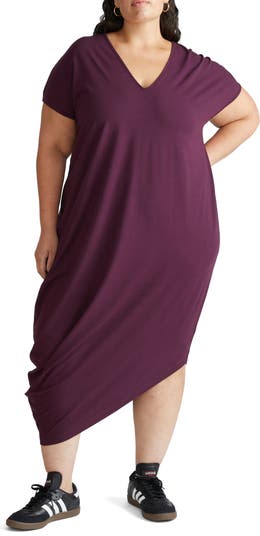 This fluid T-shirt dress will become a go-to wardrobe staple with its drapey, asymmetric silhouette and go-with-anything versatility. The stretchy Peruvian cotton fabric was specially developed by Universal Standard to hold its color, have incredible shape retention and resist pilling.