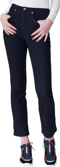 A flattering high waist and a slight bootcut silhouette make these dark-wash jeans a sleek choice for day-to-night styling.