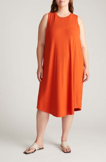 The brand's jersey fabric softly sculpts a wear-everywhere dress designed with a thoughtful back pleat to prevent clinging.