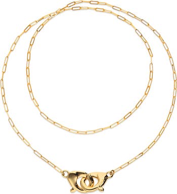A design that flows like the connections that accompany you in every step. This long necklace, plated in 18k gold, stands out for its interlocking carabiner, a symbol of a strong and durable bond. An elegant piece that reminds us that together we always go further.
