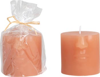 - This intricately carved pillar candle showcases a the striking silhouette of a face