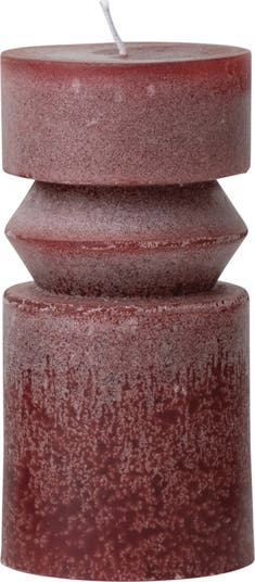 - This intricately carved pillar candle showcases a striking sculpturesque design