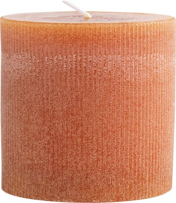 Unscented Pleated Pillar Candle in Powder Finish, Acorn Orange