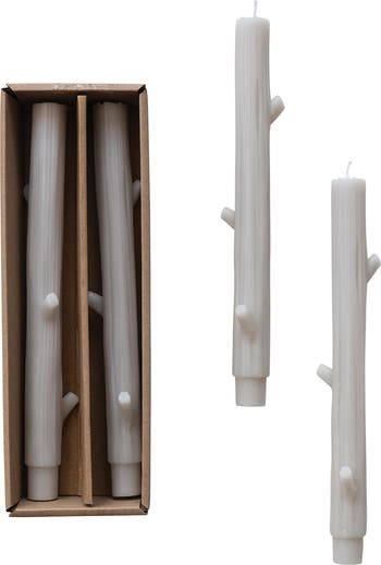 Unscented Tree Branch Taper Candles, Grey, Set of 2