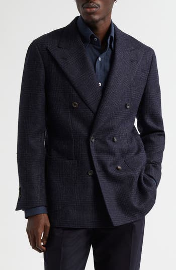 Unstructured Double Breasted Plaid Wool Sport Coat