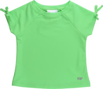 Active Raglan Bow Shirt is the perfect choice for active girls who love a pop of color. T shirt is made with a plain knit fabric that offers exceptional comfort and durability. The 4-way stretch material ensures full freedom of movement, making it ideal for any activity from playtime to sports. This girls raglan shirt is designed to resist pilling and snagging, maintaining its smooth and appealing surface even after regular wear and washes. It also provides UPF 50+ sun protection, keeping your little one safe from harmful UV rays during outdoor activities. The eye-catching bow adds a stylish twist to the classic active shirt, creating a look that stands out. With no closures, this easy-to-wear top is both practical and trendy, making it a must-have in any young girl's wardrobe. It's also non-, offering a clean and versatile appeal. Perfect for pairing with various bottoms, the Active Raglan Bow Shirt is a durable and fashionable choice for any girl's active lifestyle.
